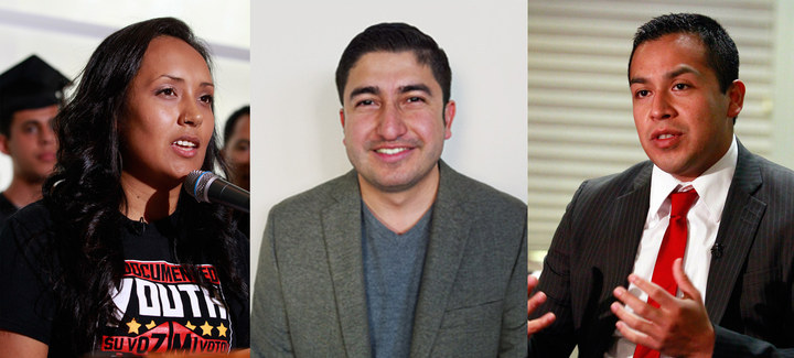 From left: Erika Andiola, Arturo Carmona, and Cesar Vargas, prominent immigration activists who have joined the Sanders campaign. AP images
