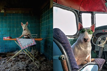 Dutch photographer Alice van Kempen has been snapping dogs for magazines and adverts since 1998. Two years ago she took on a more personal photo project: exploring abandoned buildings across Europe with Claire, her 3-year-old bull terrier.