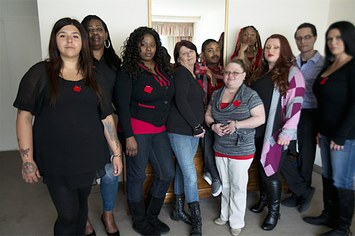 A group of former Corinthian students seeking loan forgiveness from the Education Department. From left: Makenzie Vasquez, Pamala Hunt, Latonya Suggs, Ann Bowers, Nathan Hornes, Ashlee Schmidt, Natasha Hornes, Tasha Courtright, Michael Adorno, and Sarah Dieffenbacher. Manuel Balce Ceneta / AP