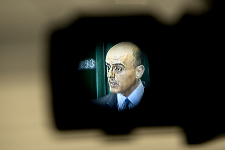 Seen in a video camera viewfinder, Saudi Arabian Ambassador Adel Al-Jubeir speaks about the Saudi military campaign in Yemen during a news conference. Jacquelyn Martin / AP