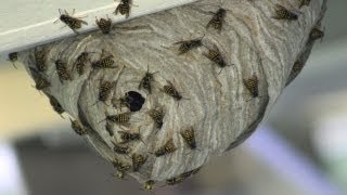 The wasps made this huge nest in a few days on our solar panels. Not something we want hanging around much longer.