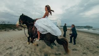 Videos·Posted on Dec 18, 2014This Bride Was Thrown From A Horse While Taking Wedding Photos And It's YikesNot all of us can be horse whisperers like Taylor Swift.by Allison BaggBuzzFeed Video CuratorFacebookPinterestTwitterMailLink On YouTube, the photographer said he had warned against it, but this bride really wanted to take a photo on top of a horse. View this video on YouTube Via youtube.com Uh oh! Tap to play GIF Tap to play GIF Guess these weren't the photos she was hoping for. Tap to play GIF Tap to play GIF Luckily, the bride was ok. She just needed to be brushed off a bit. Tap to play GIF Tap to play GIF Yet another unrealistic standard for women. Thanks a lot, Taylor! Tap to play GIF Tap to play GIF