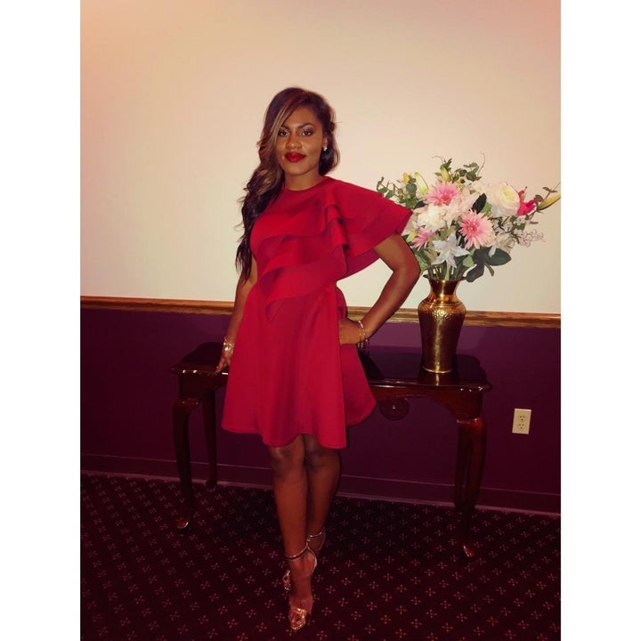10. A tie-neck cocktail dress with fun ruffle detailing because it's totally okay to love cheap ~frills~.