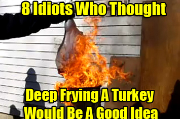 Frozen turkey + pot full of grease + large fire = these hilarious videos of idiots trying to cook a whole turkey in under 5 minutes. Enjoy!