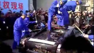 A disgruntled Lamborghini owner in China hired a crew to mercilessly destroy his black Lamborghini Gallardo after the owner felt he received unsatisfactory treatment from Lamborghini China. The owner organized the stunt to mark World Consumer Rights Day. Apparently, the Gallardo was plagued with mechanical issues even after it was serviced by an authorized Chinese outlet. Nice way to throw $250,000 right in the garbage.