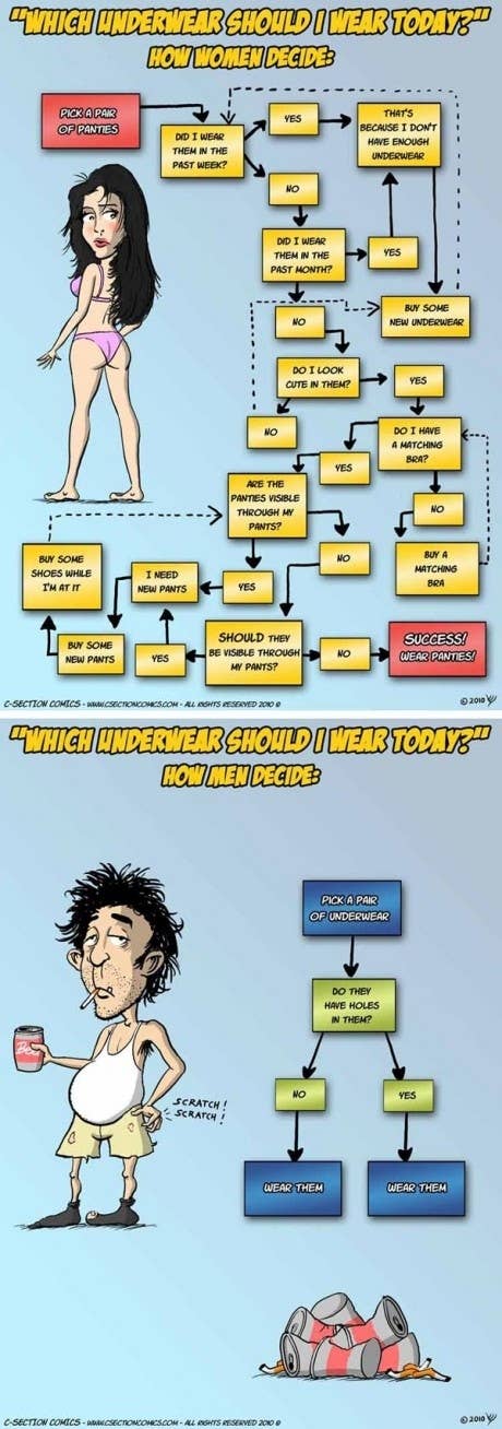 This post has not been vetted or endorsed by BuzzFeed's editorial staff. BuzzFeed Community is a place where anyone can create a post or quiz. Try making your own!Buzz·Posted on May 23, 2011Men Vs Women - The Big Underwear QuestionWomen have it so easy.by popculture360Community ContributorFacebookPinterestTwitterMailLink