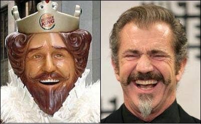 This post has not been vetted or endorsed by BuzzFeed's editorial staff. BuzzFeed Community is a place where anyone can create a post or quiz. Try making your own!Buzz·Posted on Aug 10, 2010King MelMel Gibson looks creepily like the Burger King.by The Acorn KingCommunity ContributorFacebookPinterestTwitterMailLink