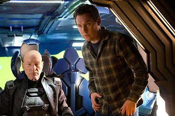 Patrick Stewart and Bryan Singer on the set of X-Men: Days of Future Past Alan Markfield / 20th Century Fox