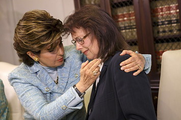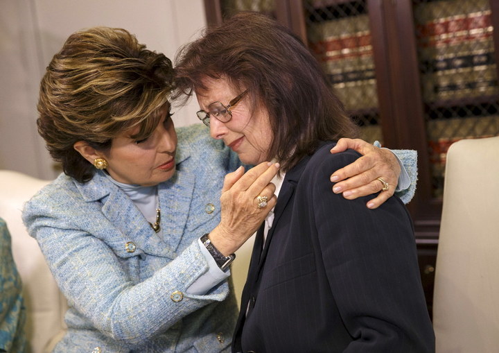 Attorney Gloria Allred comforts Linda Ridgeway Whitedeer, a former actress, as she speaks about her alleged assault by Bill Cosby during a news conference Wednesday. Patrick T. Fallon / Reuters