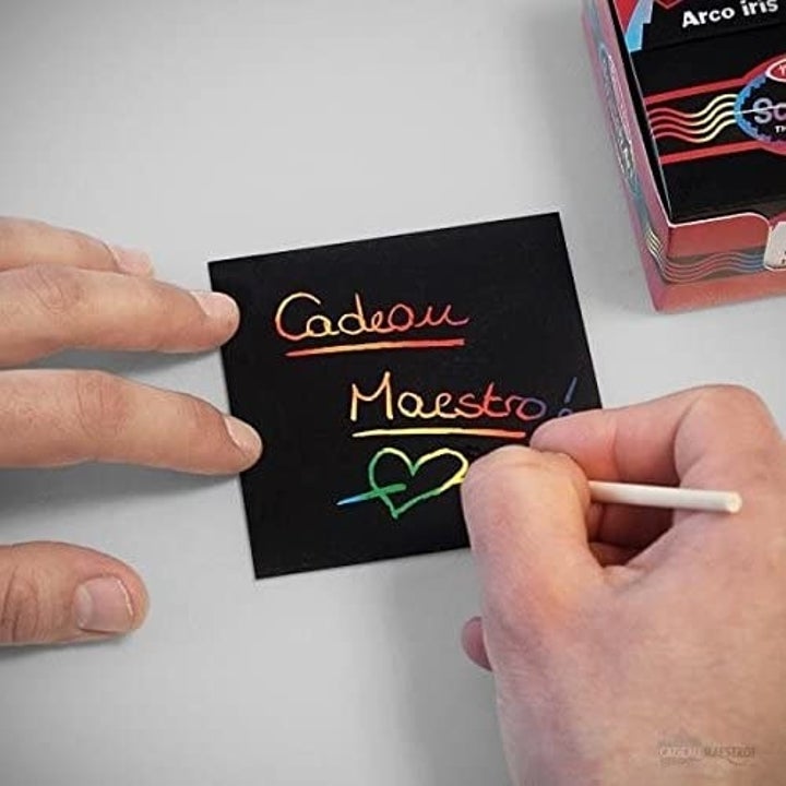 28. If you've got kids, these mess-free scratch notes will entertain them while also reminding you of that magnetic drawing board you had as a child.