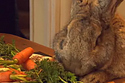 It turns out that the Jessica Rabbit Grandmother also likes to raise giant (actual) rabbits. Darius, who weighs 50 pounds, is her fourth prize-winner. He is adorably fat.