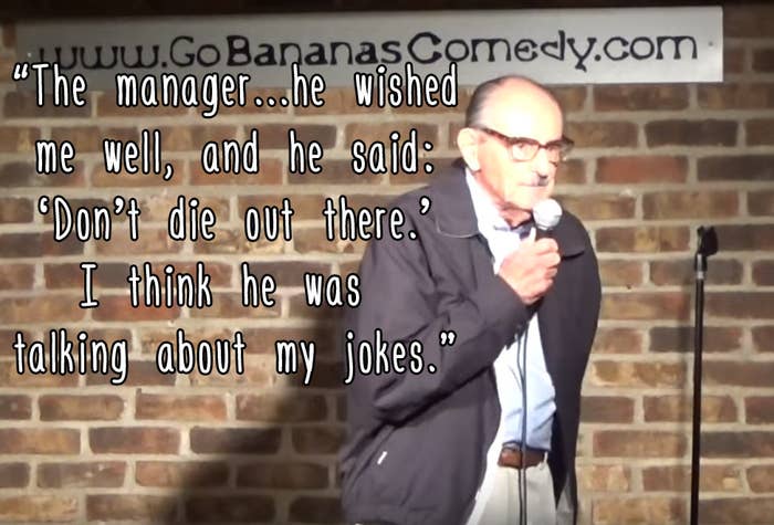 "I never thought about doing stand-up until the senior center I belong to had a short course (Stand-up Comedy 101). Four of us started, two of us finished... the other gal didn't want to appear on stage... so it was up to me to make a fool of myself."
