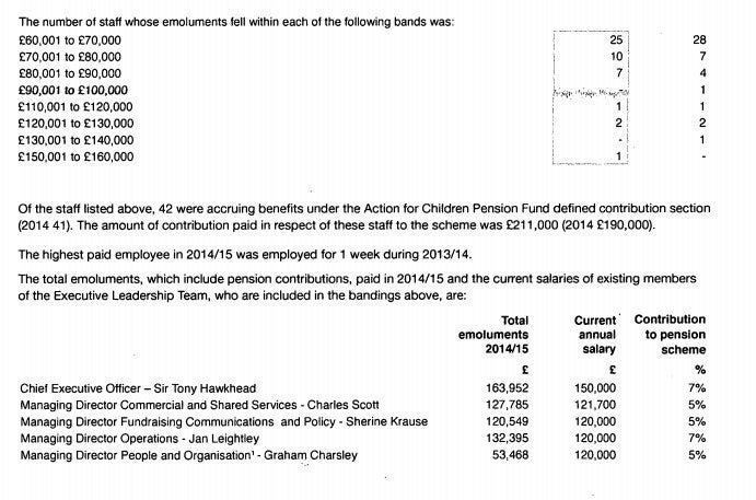 The charity's accounts show that four of its leaders earn over £110,000 a year and 21 members of staff earn over £60,000.