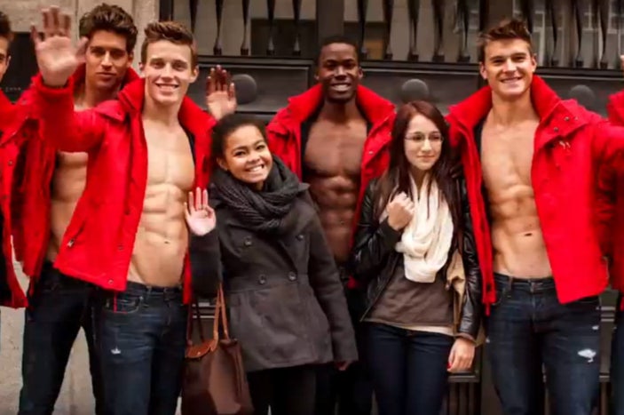 Abercrombie & Fitch celebrates the opening of any new store by unleashing shirtless hotties on the city in question.