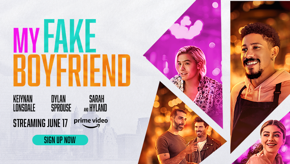 My Fake Boyfriend, a new LGBTQ+ rom-com from BuzzFeed Studios starring Keiynan Lonsdale, Dylan Sprouse, and Sarah Hyland, is out June 17 in the US — just in time for Pride! Sign up for Prime Video now so you're ready to watch.
