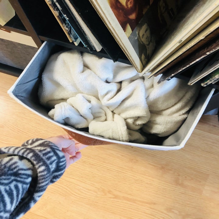 24. A set of fabric bins that'll fit perfectly into your IKEA Kallax unit (y'know, that one everyone seems to have). They have faux leather handles, making them easy to slide in and out, and they can be collapsed down when you're not using 'em.