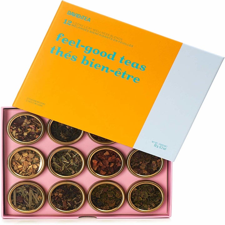 21. A set of David's Tea's most popular feel-good blends that'll give you some more interesting cozy beverages to drink than your go-to Earl Grey.