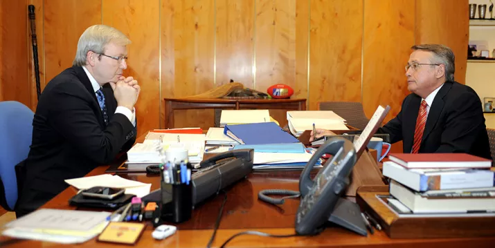 The former best mates from Queensland had turned on each other, with widespread reports that Rudd was micromanaging the budget process.