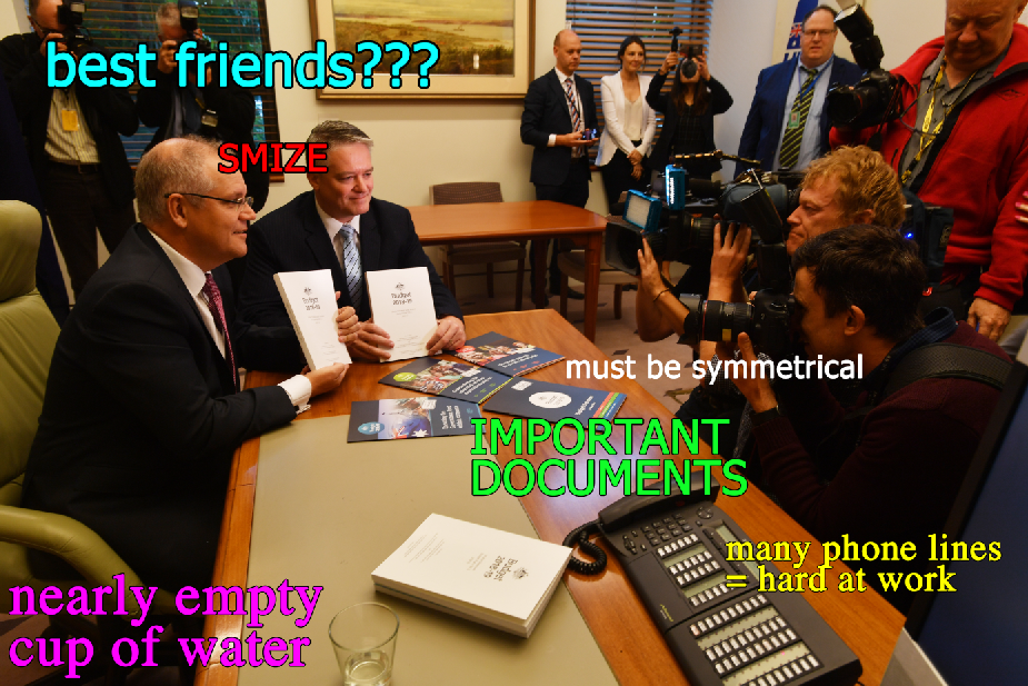 I think we can agree Morrison and Cormann's pre-budget pictures are fine. To quote Joe Hockey — good on them for having a go.