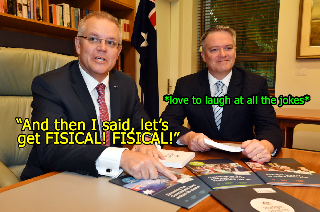 Treasurer Scott "let's go Sharks" Morrison and finance minister Mathias "don't be an economic girly man" Cormann.