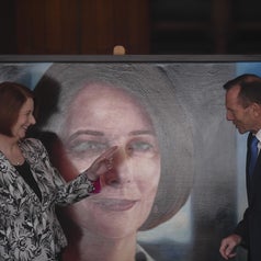 14. Julia Gillard shook hands with former rival Tony Abbott after he turned up at her official portrait unveiling.