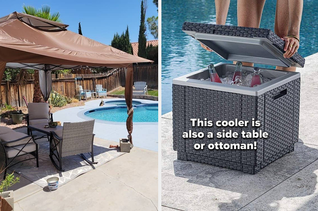 19. A multi-purpose patio cooler that also doubles as a side table OR ottoman. It's truly, in the words of Hannah Montana, the best of both worlds. Getting thirsty for a bevvy? It's in the ottoman. 👀