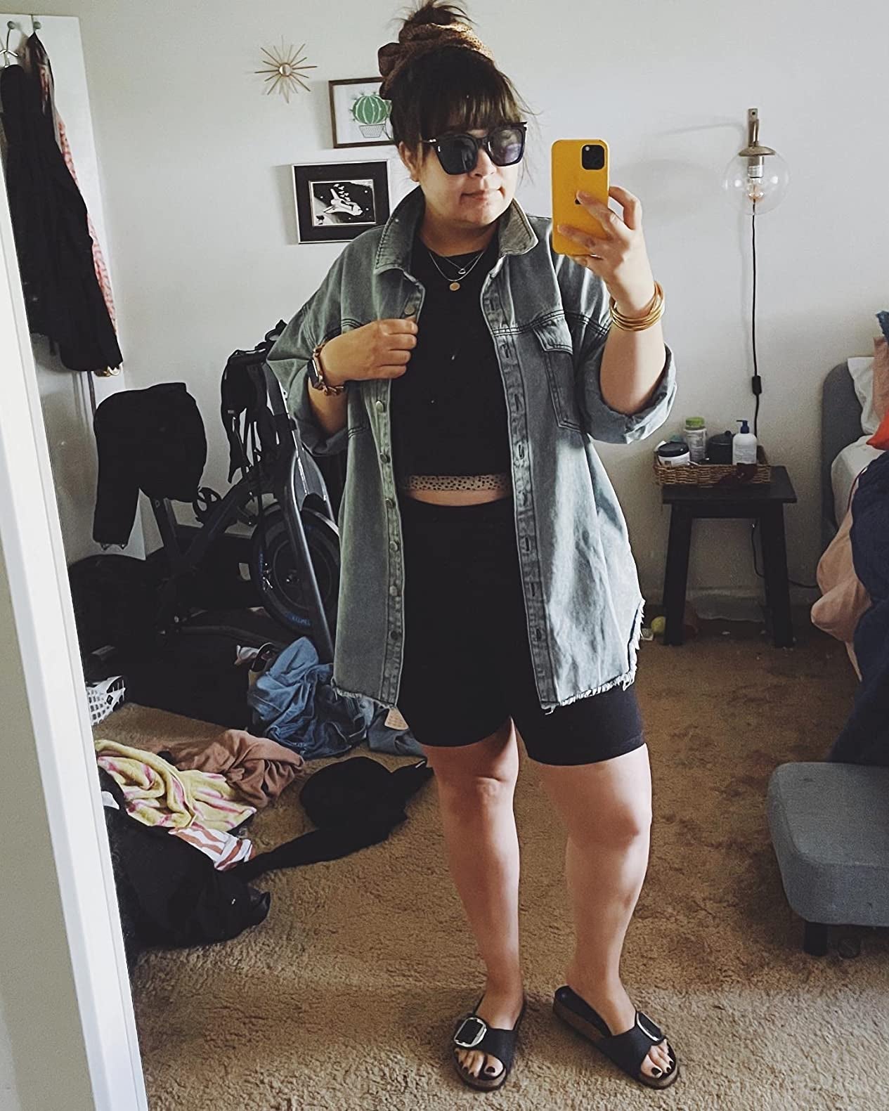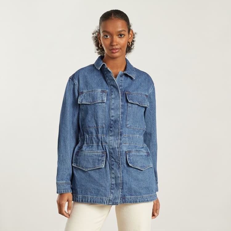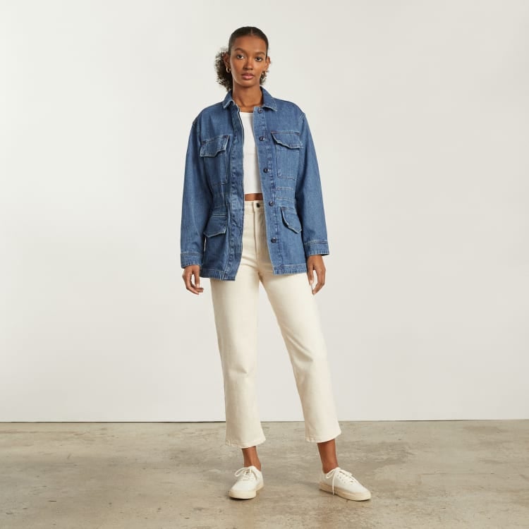 10. An Everlane denim shacket formulated from soft, 100% organic cotton, pockets galore (four, to be exact), and a classic workwear-inspired cut you can rock every time you step out the door.
