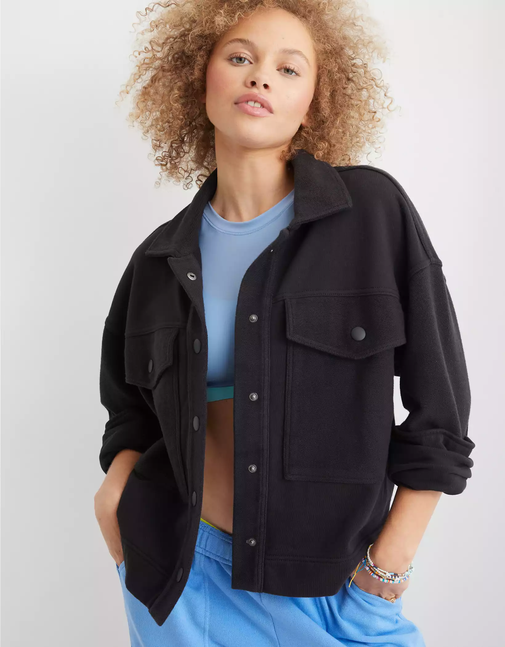27. A snuggly cropped fleece shacket to throw on over any and all of the outfits you'd deem "comfy-cute."