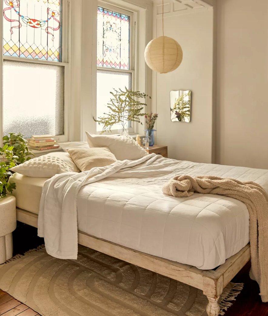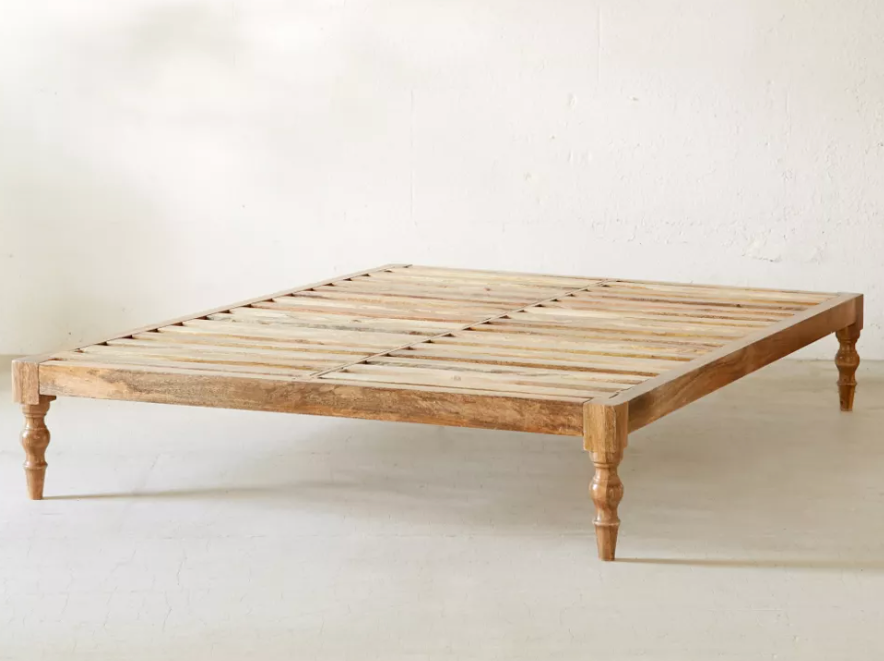 26. A mango wood bohemian-inspired Urban Outfitters platform bed with a purposefully unfinished exterior destined to make your room the designated chiller area.