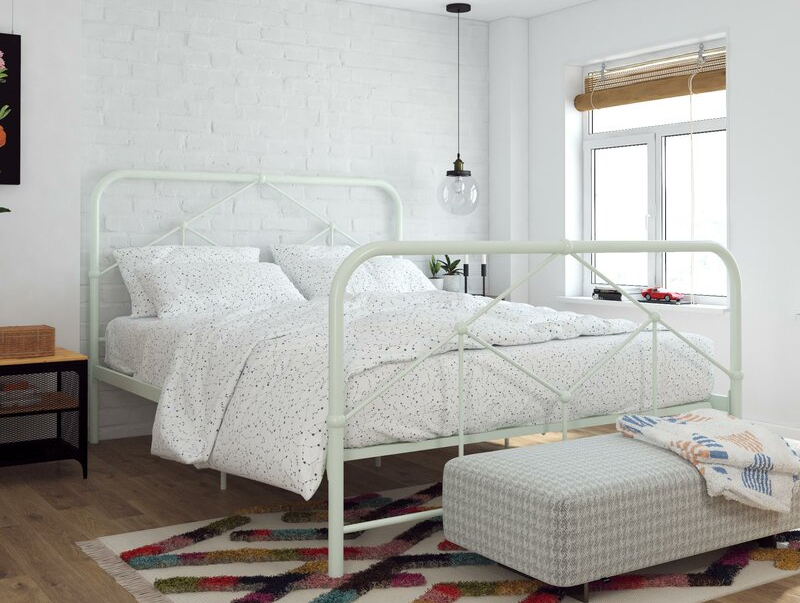 3. A metal platform bed frame whose vintage-inspired headboard, 12 inches of under-bed clearance, and alleged resistance to any squeaking will have you pledging allegiance to the online shopping deities.