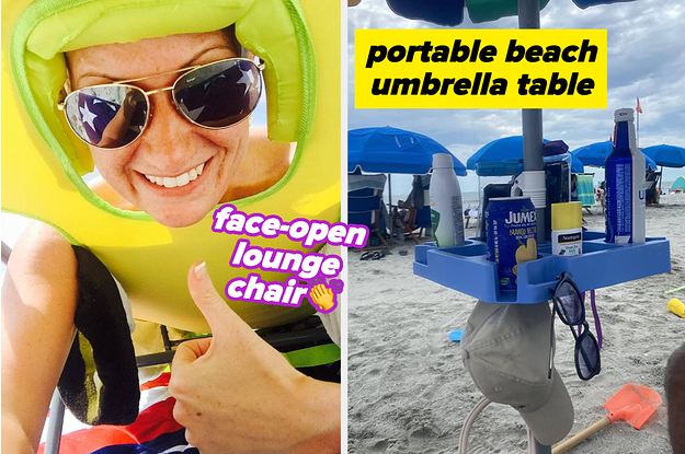 19. And an attachable beach umbrella table perfect for those public lounge chairs with no tables nearby (like...why is that a thing?). You can also clamp this to your own umbrellas in the backyard or at the beach because it's so dang portable and convenient. Keep your snacks, drinks, and electronics off the ground — it can handle it all!