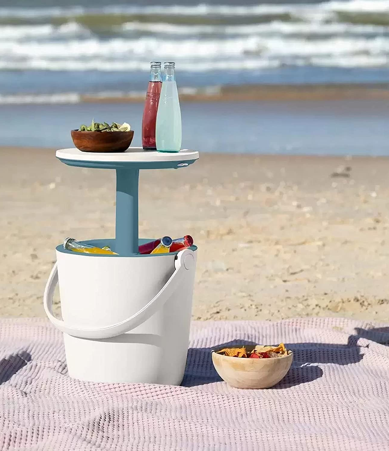 3. A convertible cooler table — a genius (and I mean *genius*) summer essential that looks like a simple cooler with a handle, but when opened fully, turns into the most convenient table ever. I mean who wouldn't love a table while sitting at the beach... or literally anywhere for that matter? Some reviewers use it as a permanent side table in their backyard, too!