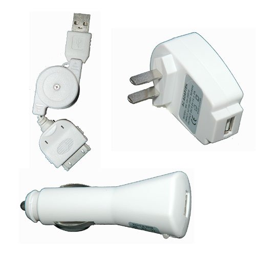 3 in 1 USB Charger Kit for iPod and iPhone: Travel Charger, Car Charger, and Retractable USB Charger and Data Cable for iPod 3G, iPod 4G, iPod Photo, iPod Mini, Nano 1G, Nano 2G, iPod Nano 2nd Generation, iPhone, iPod Classic, iPod Touch, Nano 3G, iPod Vi
