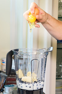 2. Add the milk, egg, whole wheat flour, and baking powder, too.