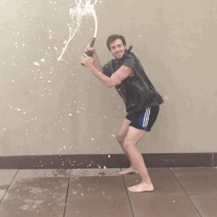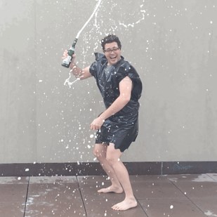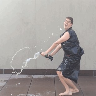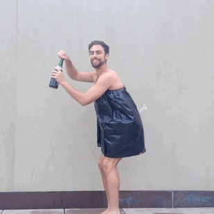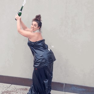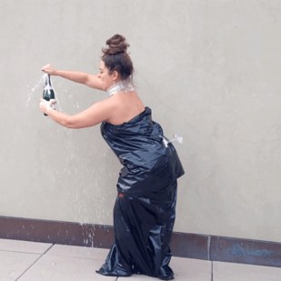 Tommy's thoughts: "It's not easy to make a trash bag dress look good while being doused in champagne, but damn it, I did it! I think Kim would be proud."