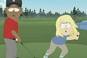 Two of the demented kids of South Park, Stan and Cartman, play a bizarre video game in the season premiere of the show. The pretend game shows an animated Tiger Woods and wife Elin Nordegren hitting each other with golf clubs.