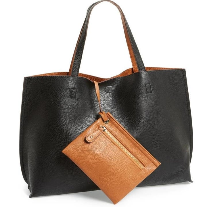2. A faux leather tote that is — brace yourself — reversible. Two bags in one! Plus, it has a nifty little wallet-inspired wristlet attached inside.