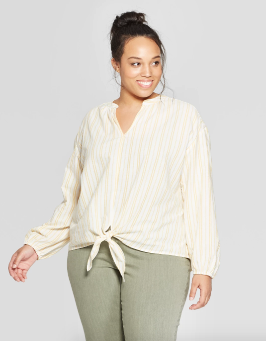 31. A striped tie-front top that is super lightweight and breezy, making it the perfect shirt for beach vacations and strolls on the boardwalk.