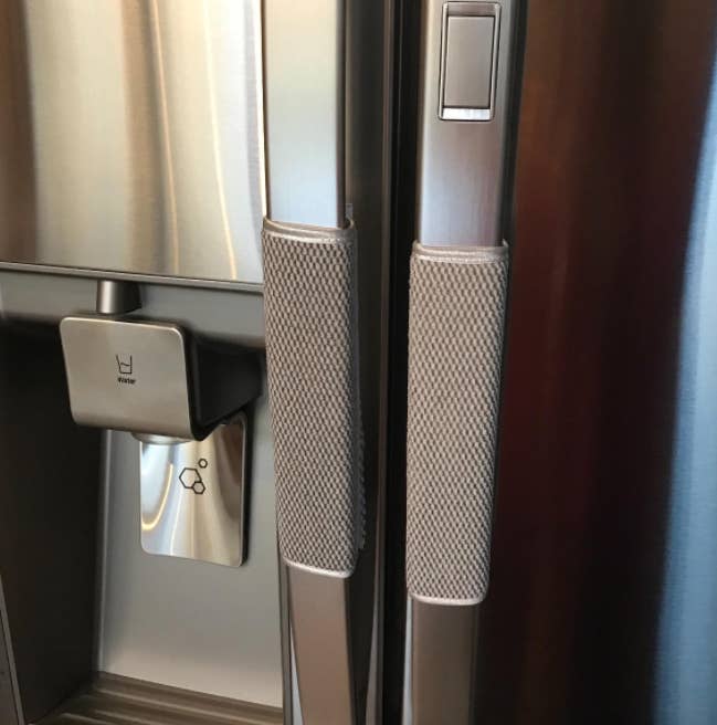 2. Door handle covers made from a plush cloth material. These babies catch dust and prevent your fridge from being riddled with smudges and fingerprints. Woo!
