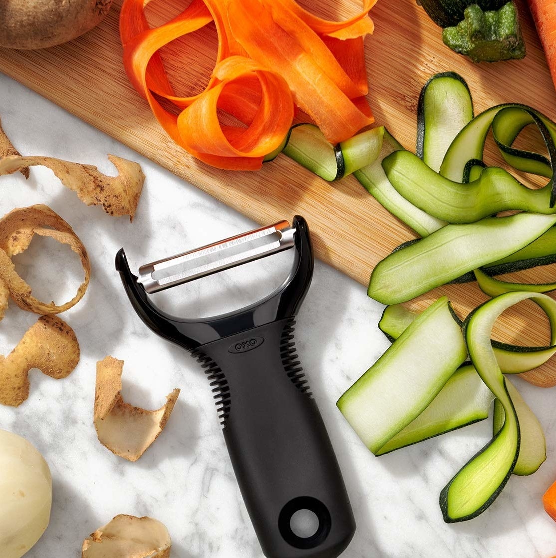 28. A dishwasher-safe stainless steel peeler capable of peeling potatoes (for your french fry dinner, of course) with speed and ease. This peeler also works on carrots, zucchini, and whatever heckin' other vegetable your nutritious self enjoys to eat.