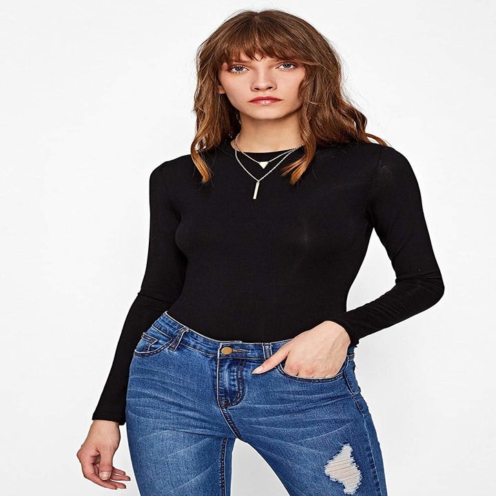 2. A crewneck bodysuit with bottom snap closures and a bit of extra length AKA this won't feel like you're wearing a permanent wedgie. Proof that perfection exists!