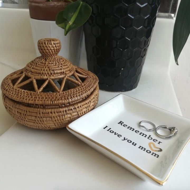 39. A trinket plate sure to have mom tearing up as soon as she carefully tears open the wrapping paper. This little piece of ceramic decor is also available with several different phrases,