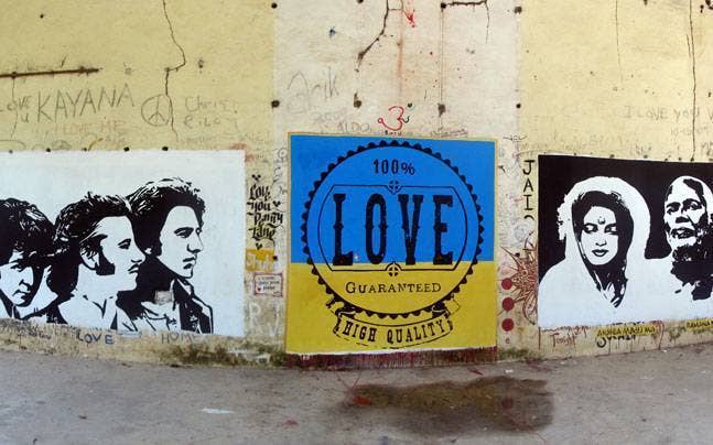 The place was cleaned up and some painting was done, but the pop-art and black-and-white graffiti will remain untouched.