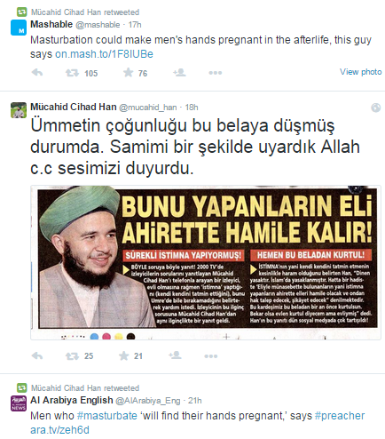 Mücahid Cihad Han, a Turkish televangelist, has recently gained a lot of attention on social media for claiming that a man who masturbates will find his hands "pregnant in the afterlife".