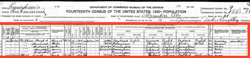 A much cleaner 1920 census form also lists her place of birth as Pennsylvania (Clinton’s father, Hugh, is also listed).