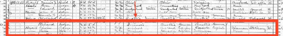 Here’s the 1920 census record listing both their birthplace as Illinois (Clinton’s mother, Dorothy, is also listed):