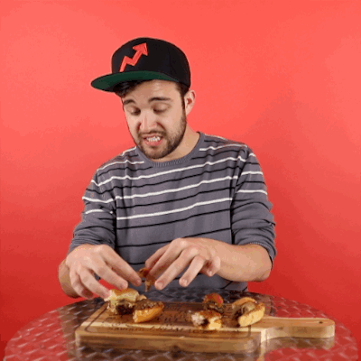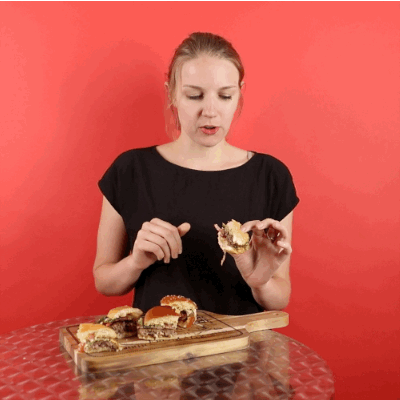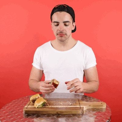 Brad: This looks like some kind of fast food burger. You can feel it - the bun is plastic-like. The other burgers are messy... and real. This one's well put together. I wouldn't not eat it, but I don't really wanna finish it.