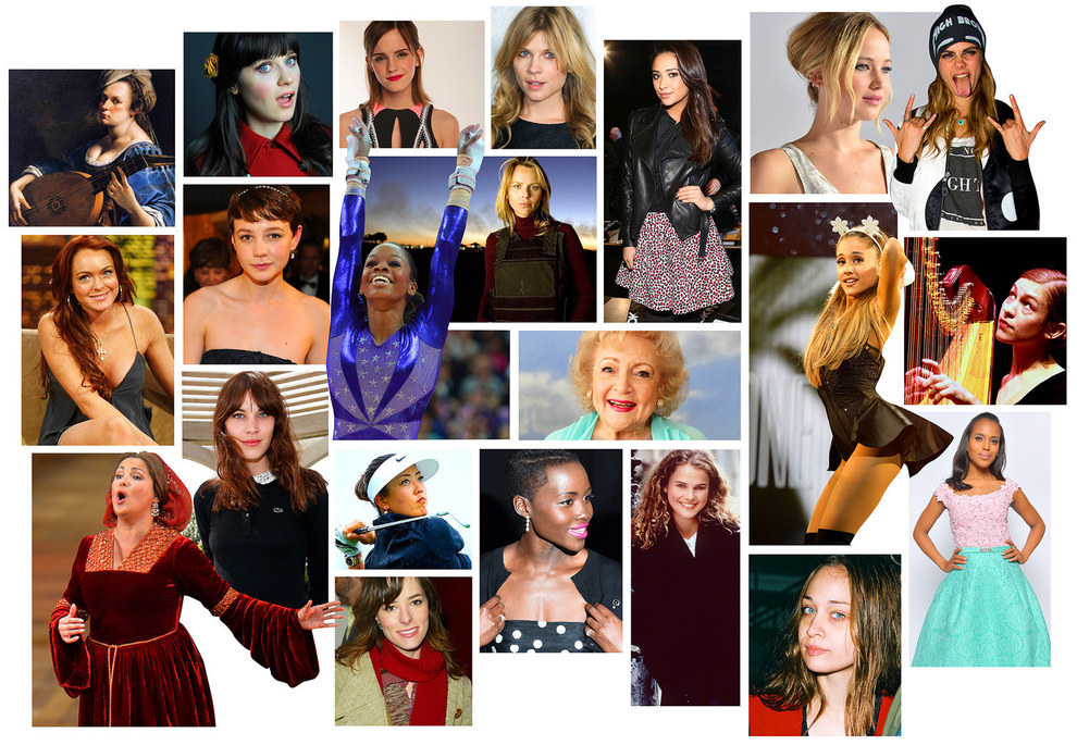 Feist, Michelle Monaghan, war zone It girl Lara Logan, Michelle Wie, Margherita Missoni, “dewy It girl of spirituality” Marianne Williamson, lit’s It girl Chimamanda Ngozi Adichie, tennis It girl Nicole Vaidisova, Carey Mulligan, Katherine Heigl, “It girl of the social network scene” Facebook, opera’s It girl Anna Netrebko, Pakistani politician Benazir Bhutto, George Clooney’s ex-girlfriend Sarah Larson, gymnast Shawn Johnson, The New Yorker cover of the Obamas fist-bumping, “It girl for the poorer, darker Russia” Agniya Kuznetsova, Alexa Chung (who published a book simply entitled It), Betty White, Blake Lively, CBC radio personality Frances Bay, Freida Pinto, “lesbian It girl” Ruby Rose, Frances Bean, San Francisco It girl Rose Pak, Elizabeth Olsen, Zooey Deschanel, “Russia’s Scandalous It Girl Kseniya Sobchak,” Carly Rae Jepsen, Lena Dunham, Gabby Douglas, “fashion’s new It girl…and boy Andrej Pejic,” Sofia Vergara, Suki Waterhouse, Annie Lennox’s daughter Tali, Kerry Washington, reality star Gigi Hadid, Lupita Nyong’o, Jennifer Lawrence, Pantone’s Color of the Year “Marsala,” model Cara Delevingne, Rita Ora, Kendall Jenner, hip-hop’s Jhené Aiko, “indie It girl” Aubrey Plaza, Ariana Grande, “director-DJ-designer” Vashtie Kola, softball player Mo’ne Davis, Emma Watson, Felicity Jones, Dakota Johnson, the Nine West It girl tote, French actress Clémence Poésy, Gossip Girl character Jenny Humphrey, “Piperlime’s new holiday It girl” Shay Mitchell and, from Vogue in 2014 alone, slideshows of British It girls, Japanese It girls, Korean It girls, country It girls, and Parisienne It girls.