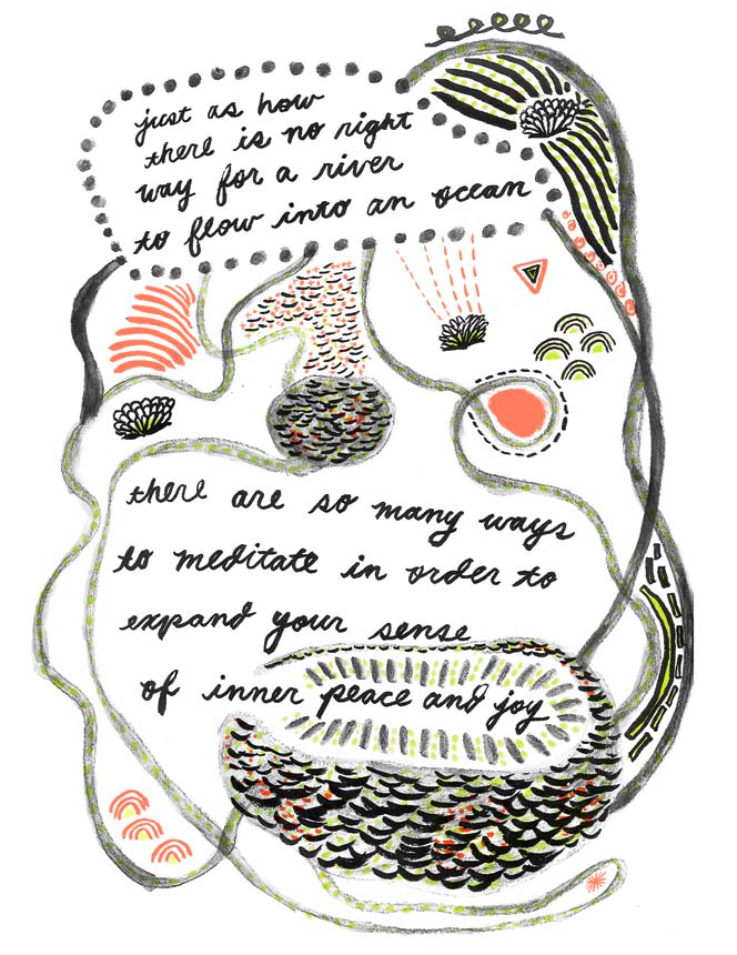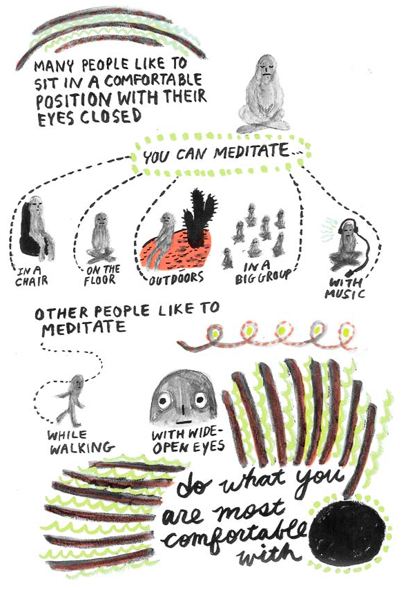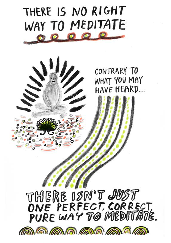 (All images excerpted from There is No Right Way to Meditate Copyright © 2015 by Yumi Sakugawa and published by F+W Media, Inc. Used by permission of the publisher. All rights reserved. Illustrations by Yumi Sakugawa.)