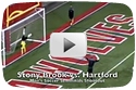 A goalie taunts the other team before a shootout attempt by performing cartwheels. Turnabout is fair play.